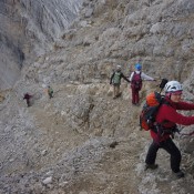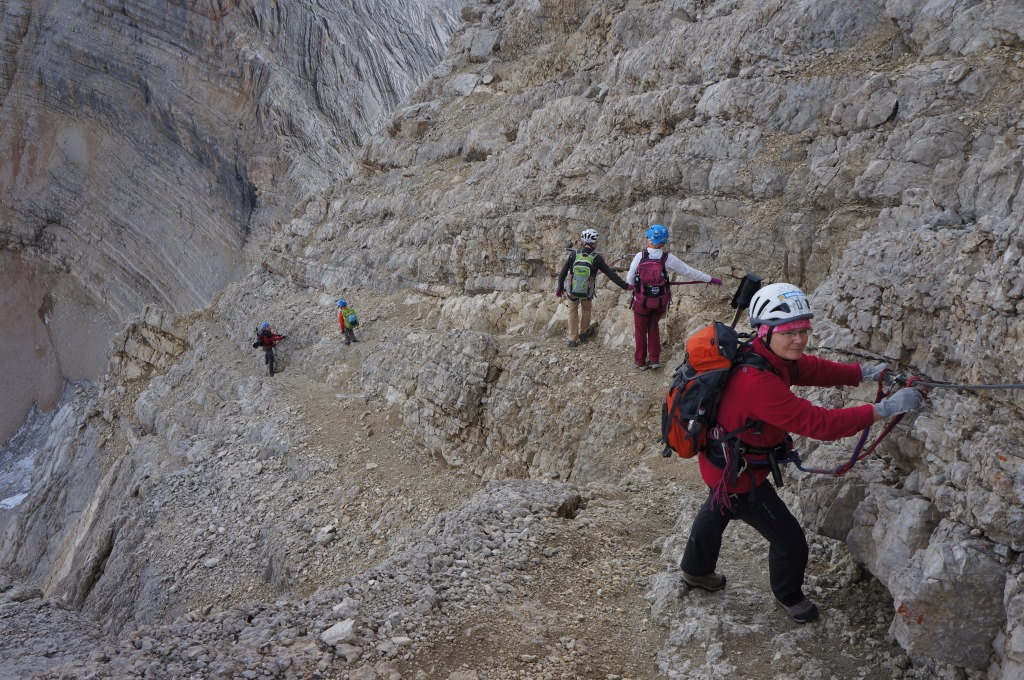 Наталья Соснина, Евгений, Дмитрий и Николай Крейцберги, а также Ирина Бужинская и Вадим Васильев настоятельно рекомендуют посетить Доломитовые Альпы и воспользоваться услугами бесплатной вертикальной железной дороги – виа-ферраты!