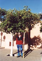Непременным атрибутом Марокко, понятное дело, служат апельсины-мандарины. Так вот, они тут произрастают прямо на улицах, и никто-то их не пользует. Главной причиной, видимо, является их паталогическое бешенство: где вы видели, скажем, одновременно цветущую и увешанную плодами яблоню, а вот у цитрусовых это сплошь и рядом. Интересно, что никто из местных не показывает пальцем на человека с лыжами под сенью апельсинового дерева. Оказывается, привыкли. Встретился и нам некто с предметом, напоминающим лыжи в чехле, сообщивший, что позавчера в горах был "good skiing". Что-то не очень верится, снегу из Марракеша видно мало, посещает недостойное желание оставить лыжи прямо тут, но чувство гордости за прецедент не позволяет.