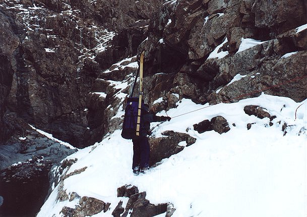 Еще вчера хотели выкинуть веревку и побольше железа. Но два внутренних голоса взяли верх над ленью. И вот в 17-45 ищем обход настоящего прижима в начале каньона реки Аssif Tifni. Слева нет, справа нет, впереди гладкие скалы и порядочной глубины лужа. Сорок минут уходит на безуспешные поиски обходов, смеркается. По совести, каньона этого нет ни в описании, ни на карте километровке. Сюрприз! Но вот по следам неизвестной зверюшки начинаем вешать веревку. Петли за скальные затычки, ледобур в натечный лед, надежный выступ - все идет в дело. Повесили, прошли, сняли. Справились за 25 минут. Дальше вприпрыжку по каньону в надежде успеть из него выйти до темноты. Ан нет, не хватило упорства на последние 15 минут. Заночевали прямо на дне каньона, прислушиваясь к ночным шорохам. В два часа ночи что-то все же упало, но поодаль и не всерьез. А наутро оставили кошки, последний ледоруб, газовый баллон, килограмм еды и в Аzib Likemt по холодку.