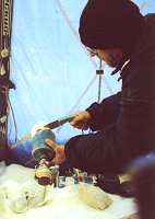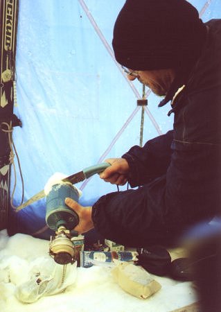 Помимо борьбы с Природой и прочих забав экспедиция преследовала и сугубо практические цели. На языке специалистов это называется "испытания снаряжения". Все участники, кроме одного, умышленно пользовались шапками Satila. Модели на Виндстопперовом ходу Cortina, Keron, Blizzard без сомнения были хороши. Горы даже пожелали принять одну из них в дар.