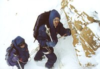 После установки лагеря наблюдался эпизодический припадок эйфории: самый опытный участник очень серьезно предложил подняться на гору сегодня. Так-так, примем меры. Лучшая терапия - умеренные физические нагрузки. Построим-ка стенку. Так, для спокоя. Карьер заложен, люди при деле, хромает только инженерная сторона - проект в один кирпич оказывается слабоват. Это становится очевидно только через 2 часа.