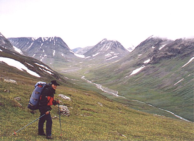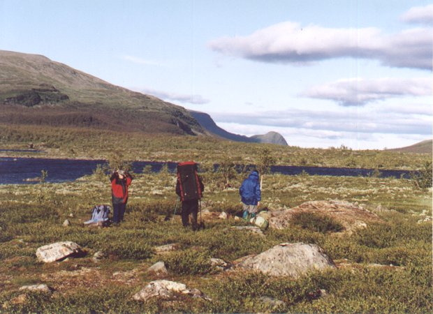 А дальше по тропам и без них, через боковые притоки вброд навстречу многочисленным оленям в долине Alep Basstajahka. Отсюда, малость посомневавшись, отложили восхождение на Ahpar на следующий раз. Причина банальна - ничего не видно и не будет видно наверняка. Тогда на юг - через массив Skarki. Здесь будет перевал между Svirjatjahkka и Unna Skoarkki. Так повелел совет стаи, а раз так, значит надо.