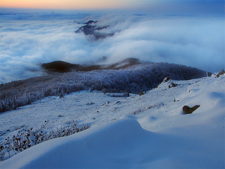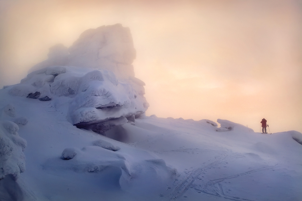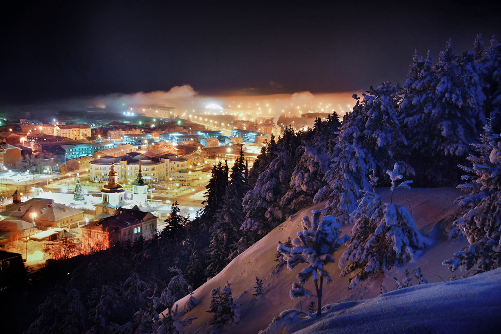 Когда стемнело, на ночной Ханты-Мансийск стал надвигаться туман с реки Обь. Он аккуратно и, как будто, бережно накрыл своим одеялом от морозной, зимней, сибирской ночи спящий город. А я смотрел за этим действом с высоты холмов, в подножии которых лежал город.«Уши-то видно»