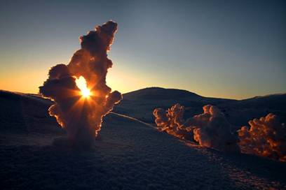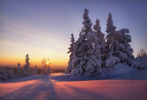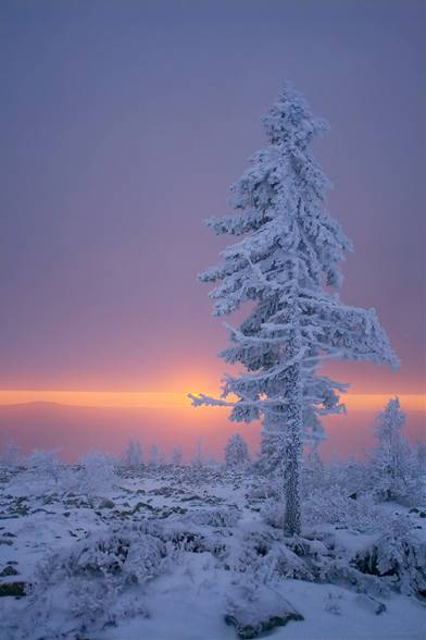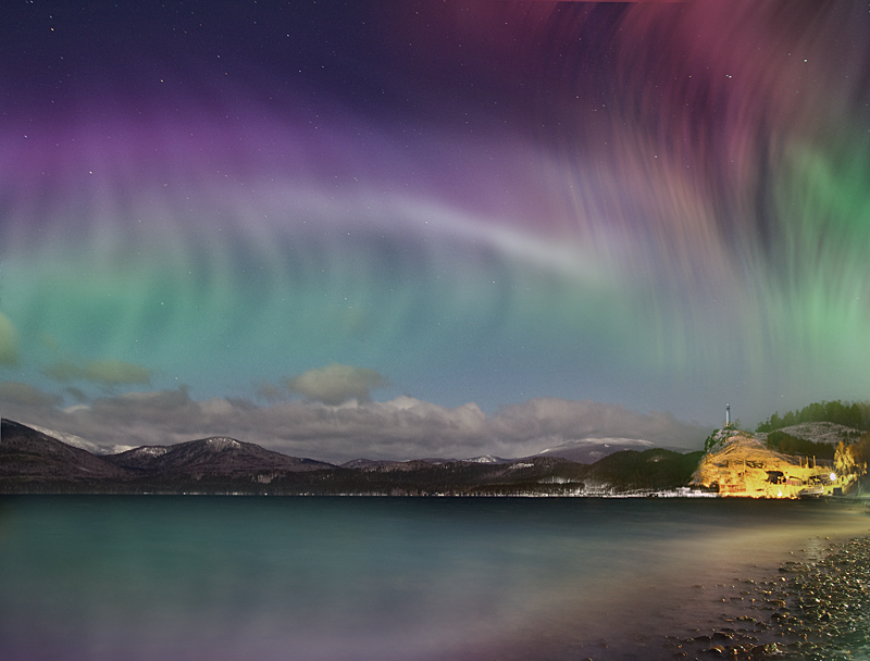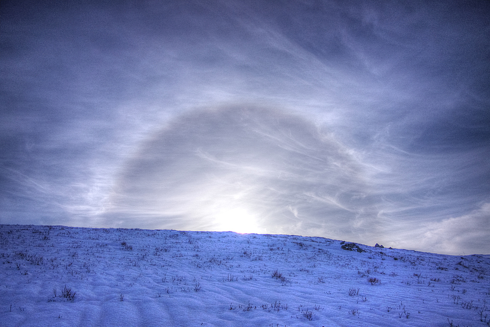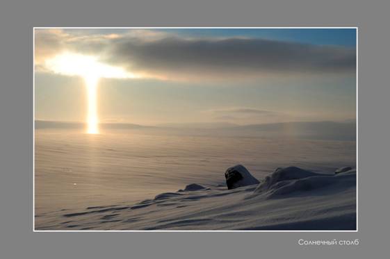 Еще одно редкое явление - солнечный столб. Удивительное зрелище. Свет будто льется с небес.