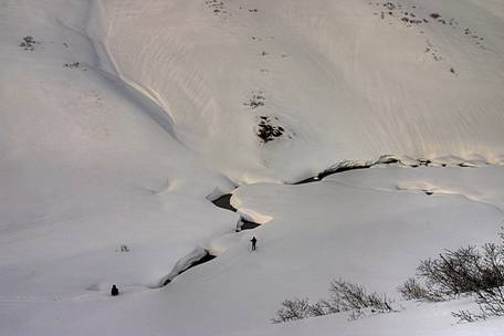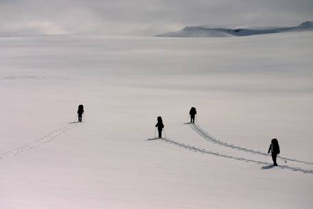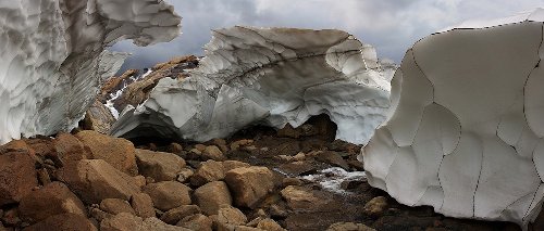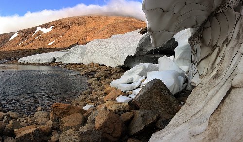 На апрельском плавленом снегу.У погоды здесь характер хлёсткий: