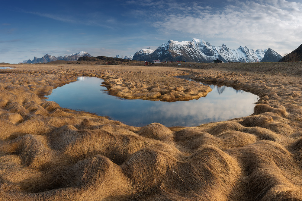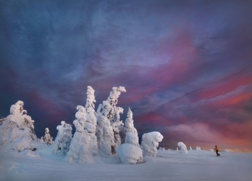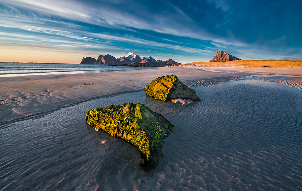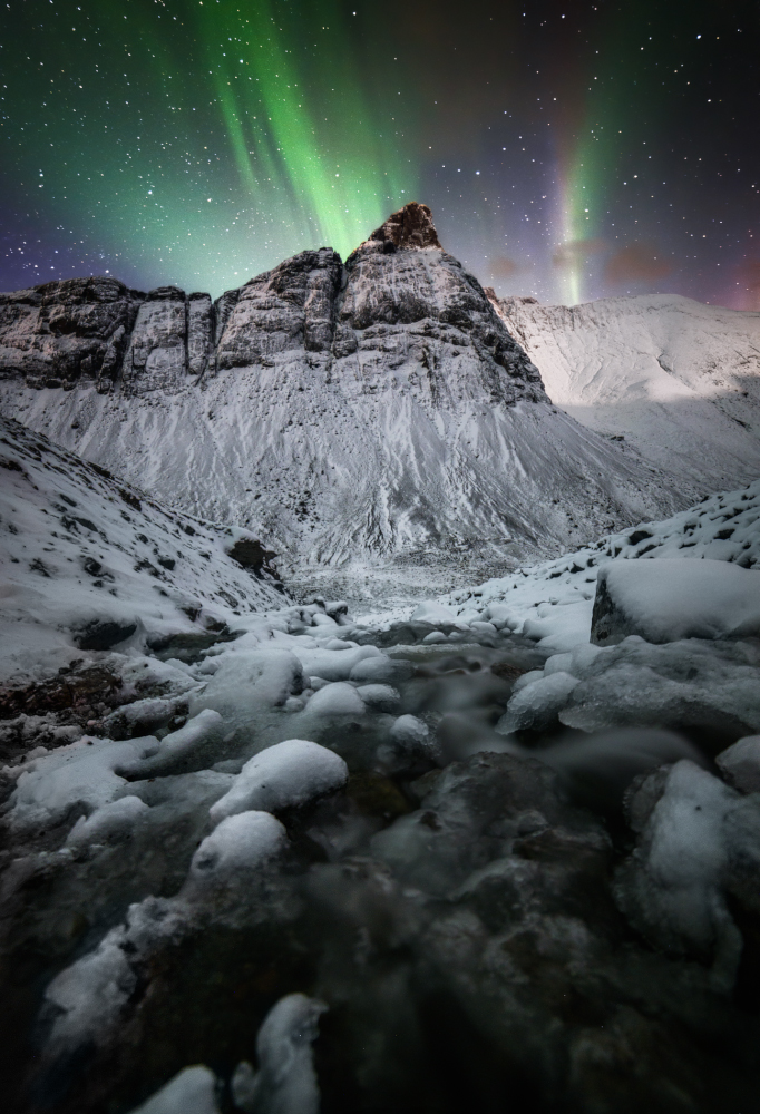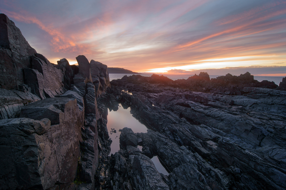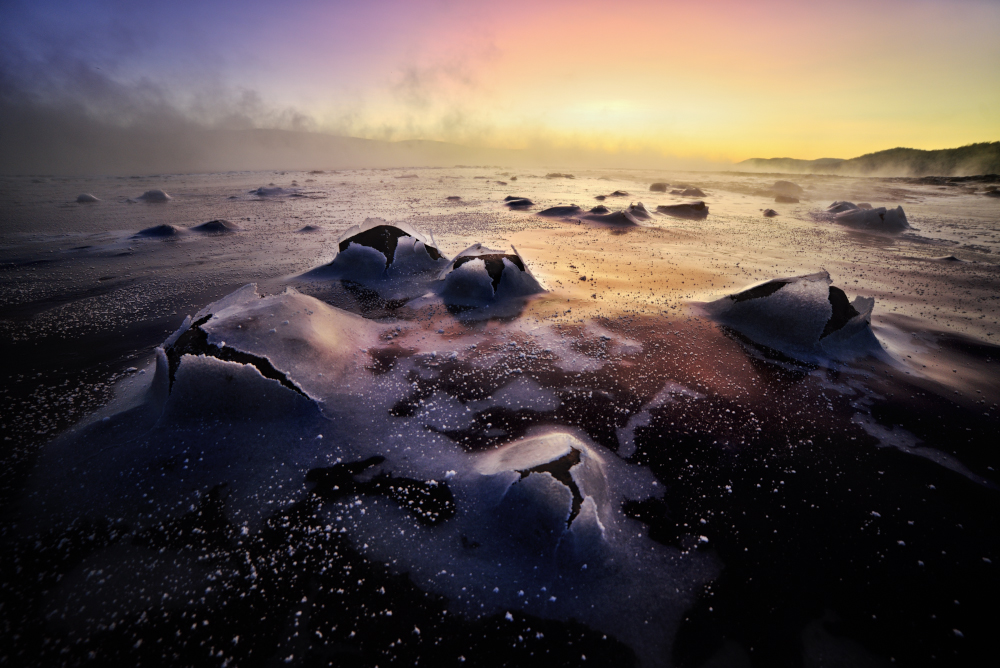 Выглянув из палатки этим утром, захотелось сразу же забраться обратно и укутаться в теплый спальник, все было вокруг серым, моросил дождь и вроде бы никаких намеков на красивый свет. Но что-то внутри говорило об обратном. Камни на переднем плане в прилив почти полностью скрываются под воду и это было большим везением, что во время рассвета уровень моря был таким как нужно. Стоит упомянуть про усиливающийся дождь в самый пик рассвета, после каждого кадра приходилось протирать линзу объектива и это очень дестабилизировало, хотелось спрятать поскорее камеру и где-нибудь. Мурманская обл, полуостров Рыбачий, мыс Кекурский